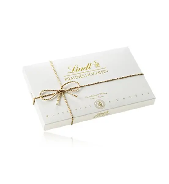 Der Klassiker aus dem Hause Lindt: Eine traditionsreiche Komposition hochfeiner Nougat-, Marzipan-, Trüffel-, Mandelcrème- und Nuss-Pralinés. Erhältlich in vier verschiedenen Größen – und damals wie heute mit der handgebundenen Schleife!